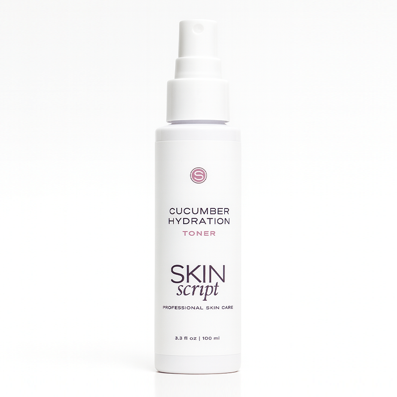 Indulge in the calming embrace of Skin Script's Cucumber Hydration Toner, a soothing elixir designed to replenish moisture, balance skin, and enhance the efficacy of targeted treatments.