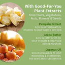 - Soothes & Calms: Shea butter and pumpkin seed extract help soothe and calm dry skin.