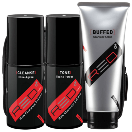 Step into Skin Law 101: Cleanse. Elevate your cleansing routine with the Total Cleanse Method, a comprehensive approach to achieving impeccably clean skin. Experience the invigorating power of Blue Agave, a specially formulated daily wash designed to awaken and refresh your complexion. Take exfoliation to new heights with Buffed, a granular scrub that polishes away impurities, leaving your skin smooth and rejuvenated. Complete your regimen with RA for Men’s Stone Power, a peptide toner that not only strengthens the skin but also provides a cooling and soothing sensation, perfect for post-shave application or refreshing your skin throughout the day. Embrace the feel, aroma, and undeniable results of this comprehensive skincare kit—a must-have for men who prioritize skin health and wellness.