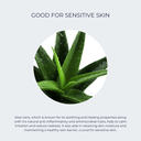 Aloe Vera, which is known for its soothing and healing properties along with it's natural anti-inflammatory and antimicrobial traits, help to calm irritation and reduce redness. It also aids in retaining skin moisture and maintaining a healthy skin barrier, crucial for sensitive skin.