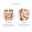 Apply 1-4 drops to face in circular motions, then use washcloth and/or water to wipe and rinse off.