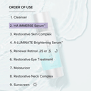 - Apply HA IMMERSE as the FIRST product in your daily regimen after cleansing.