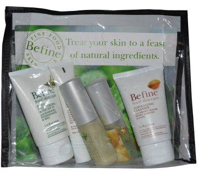 Your skin is starving. Treat it to a feast of 181 natural ingredients. BeFine has created the perfect travel set designed to rejuvenate and restore your skin.