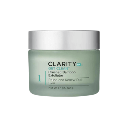 Get Clean™ Crushed Bamboo Exfoliator delicately polishes away dull skin and stimulates skin renewal for a fresh, glowing complexion. This gentle exfoliator encourages skin cell turnover, while Rosemary, Calendula and Cucumber soothe and calm irritations. Improves skin clarity while refining, smoothing and softening skin’s texture.