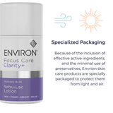 After cleansing and toning with the Focus Care Clarity line or other ENVIRON line. Combine Sebu-Lac Lotion in the palm with equal parts of Sebu-ACE Oil and massage gently into the face. Can also be used alone. The combination of active ingredients brings optimal results.