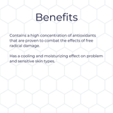 It helps hydrate and soothe the skin while reducing the damage from free radicals.
