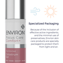 Environ Focus Care Comfort+ Colostrum Gel contains bovine colostrum in a non-sticky gel formula. This immune-boosting serum helps to protect the skin from external and internal stressors and is enriched with vitamins and a variety of antioxidants. The natural fragrance of lavender oil has a calming, healing effect on the skin and assists in the production of healthy collagen, elastin and growth factors, which all reduce the appearance of fine lines.