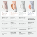 - Elevated Priming: Makeup applies seamlessly and stays in place for extended weartime while providing boosting brightening + illumination.