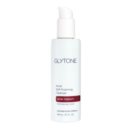Glytone Acne Self-Foaming Cleanser is a non-irritating, foaming face cleanser that prolongs contact of Salicylic Acid with the skin to help control excess oil, unclog pores and prevent new acne from forming. Cleanses surface debris, clears pores and gently exfoliates while healing existing acne pimples, blackheads and whiteheads. May also be used for a mask-like cleanse (leave on 30 seconds before rinsing.)