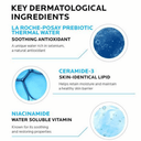 - La Roche-Posay Prebiotic Thermal Water: A soothing water sourced in the town of La Roche-Posay in France and a core ingredient in most of our products. It contains a unique combination of minerals, trace elements, and a high concentration of selenium, a natural antioxidant.