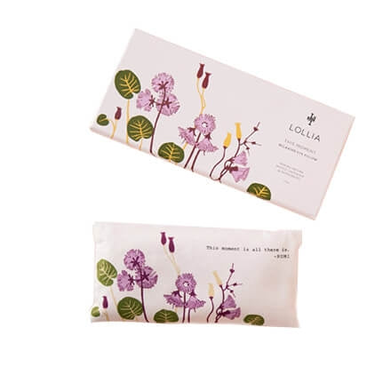 Take a moment for yourself. This soft, scented eye pillow is filled with whole Lavender, Peppermint and Flax Seeds to soothe the senses as you sleep. Inspiring bright & beautiful dreams, meandering blossoms set off a lovely reminder from poet and philosopher Rumi that “This moment is all there is.”