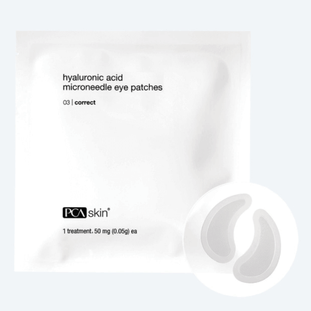 Transform your under-eye area with PCA Skin Hyaluronic Acid Microneedle Eye Patches, the first professional-grade microneedle eye treatment. Each patch features 1,254 self-dissolving microneedles infused with 50 mg of 4-D Hyaluronic Acid, delivering hydration and anti-aging ingredients deep into the skin. Clinically proven to reduce wrinkles by 22% in just one treatment*, this advanced formula also features Daisy Flower and Hawkweed Extract to brighten dark circles, while Amino Acid and Copper soften fine lines and wrinkles.
